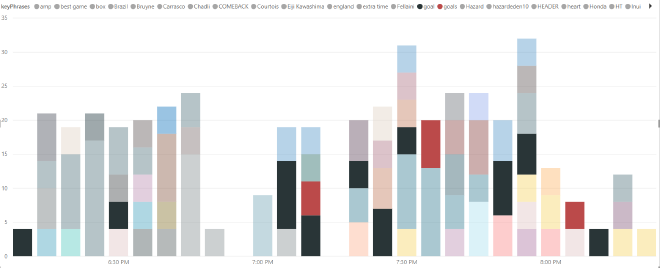 In this blog post we used Logic Apps to collect tweets and used Cognitive Services to detect the language of the tweet. If necessary we translated the tweet to English before extracting the key phrases with Cognitive Services. We stored the data in Azure Table Storage and analyzed it with Power BI. With the right presentation of the data in Power BI we were able to get a pretty good picture of when goals were scored, by who and in some cases even how.